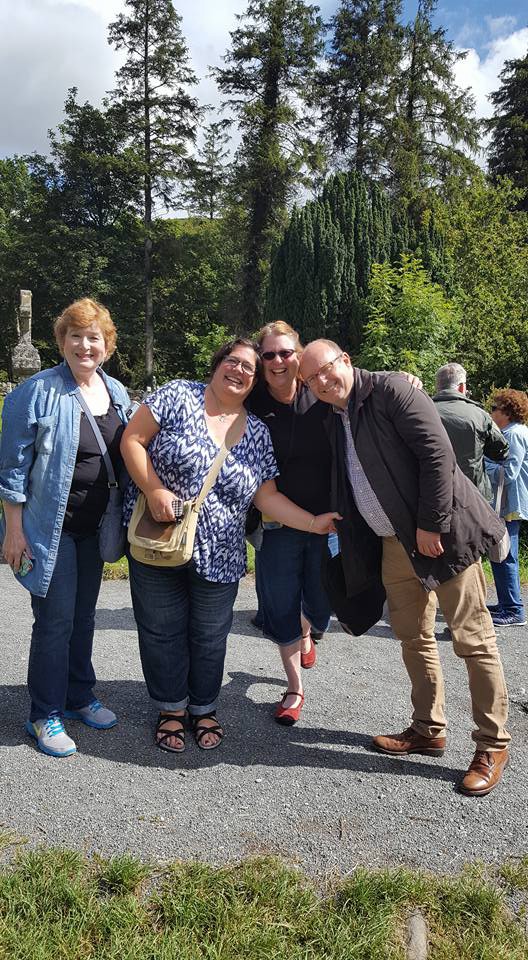 Margaret, Sara Jane, Kate, and Colm cut up at Glendalough. Most people take pilgrimages here for serenity and peace. We apologize. Photo credit: Viki