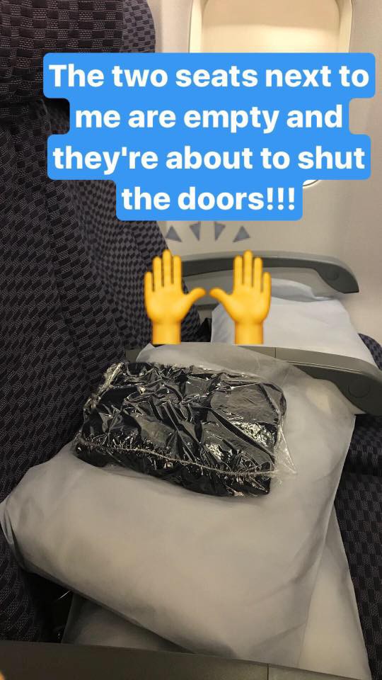 I got the entire row of seats to myself on the red-eye flight! It was pretty amazing.