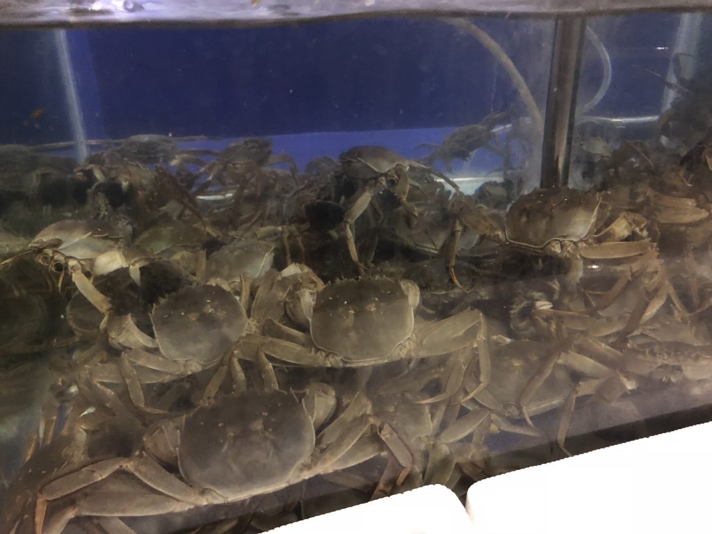 Today, my ship full of hairy crabs came in, in the form of a delightful colleague who took me out for dinner. She took me to a little spot in a strip mall with no proper doors and with an entire side wall full of crab tanks.