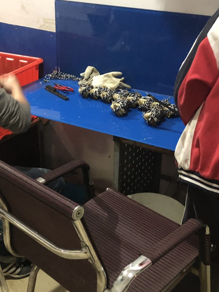 Once the crab man (he probably has a more proper title) caught the crabs, he tied their legs down…